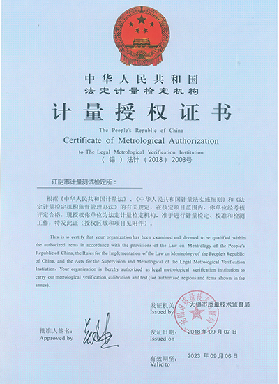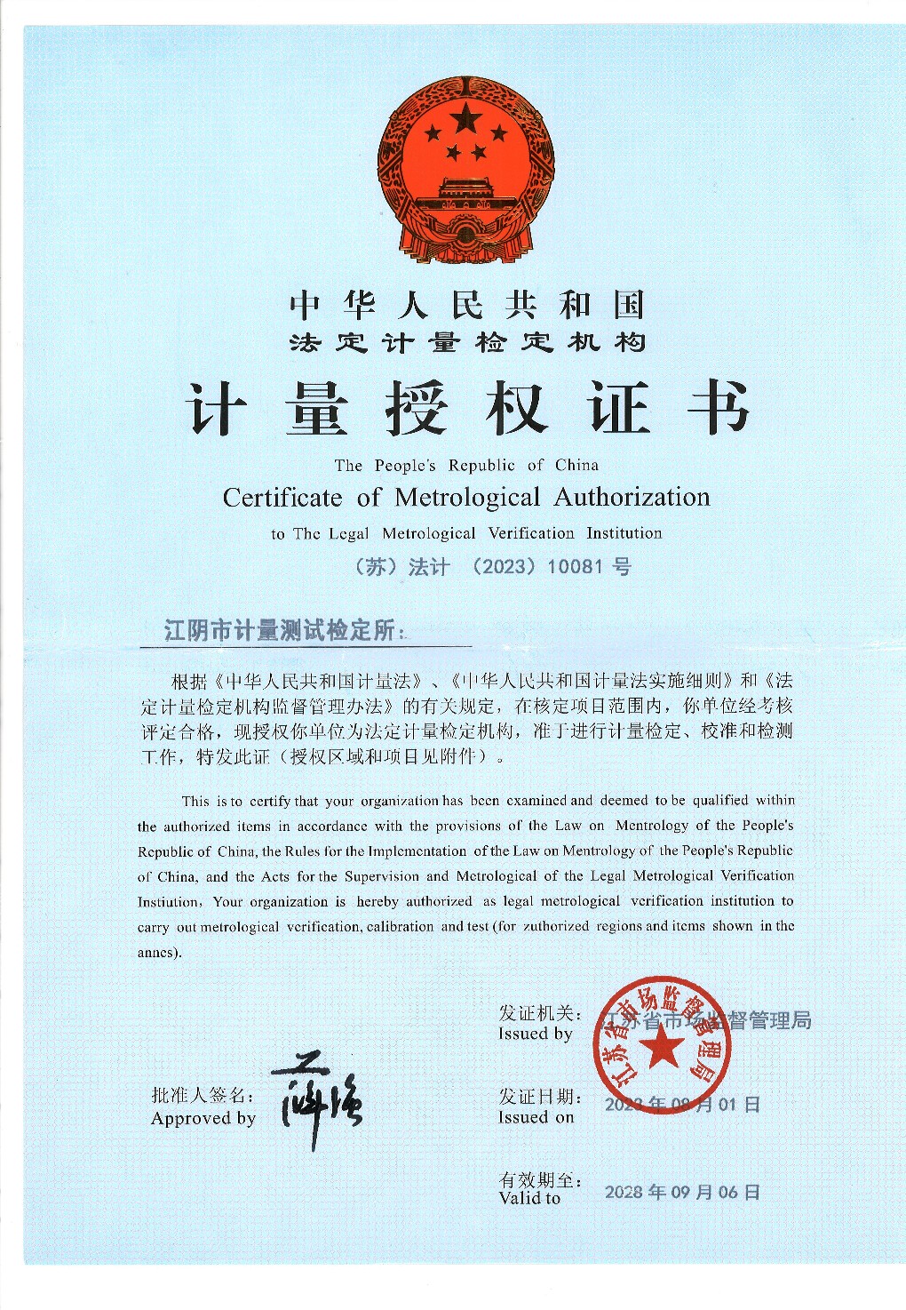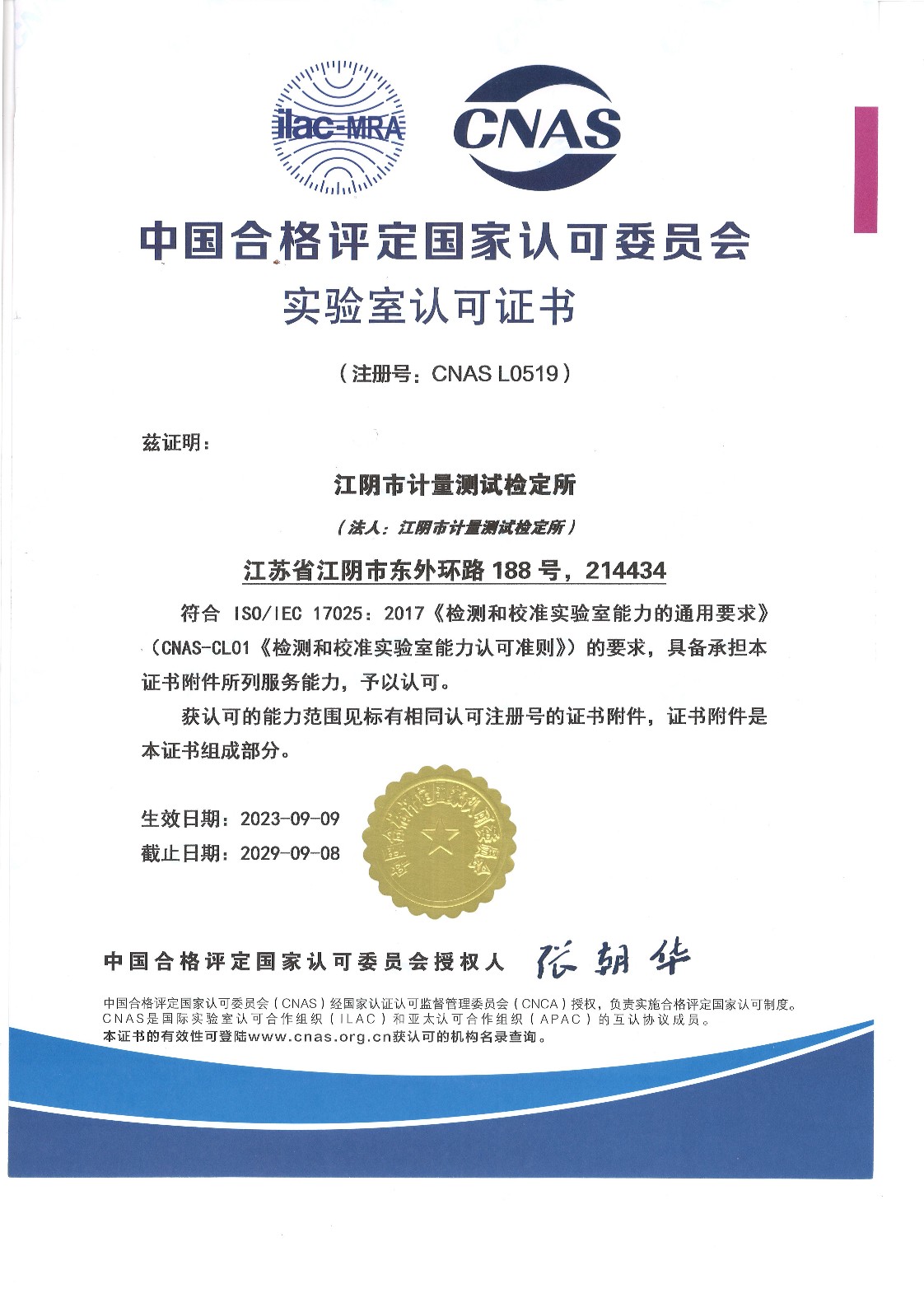 江陰市計量測試檢定所(計量檢定校準中心)成立于1998年,是經中國合格評定國家認可委員會(CNAS L0519)認可的法定計量檢定機構(錫法計(2018)2003號),負責建立全市社會公用計量標準、實施量值傳遞和量值溯源工作,并承擔政府行政部門委派的強制檢定和法律規定的其他計量檢測任務