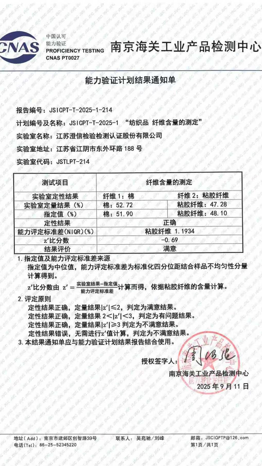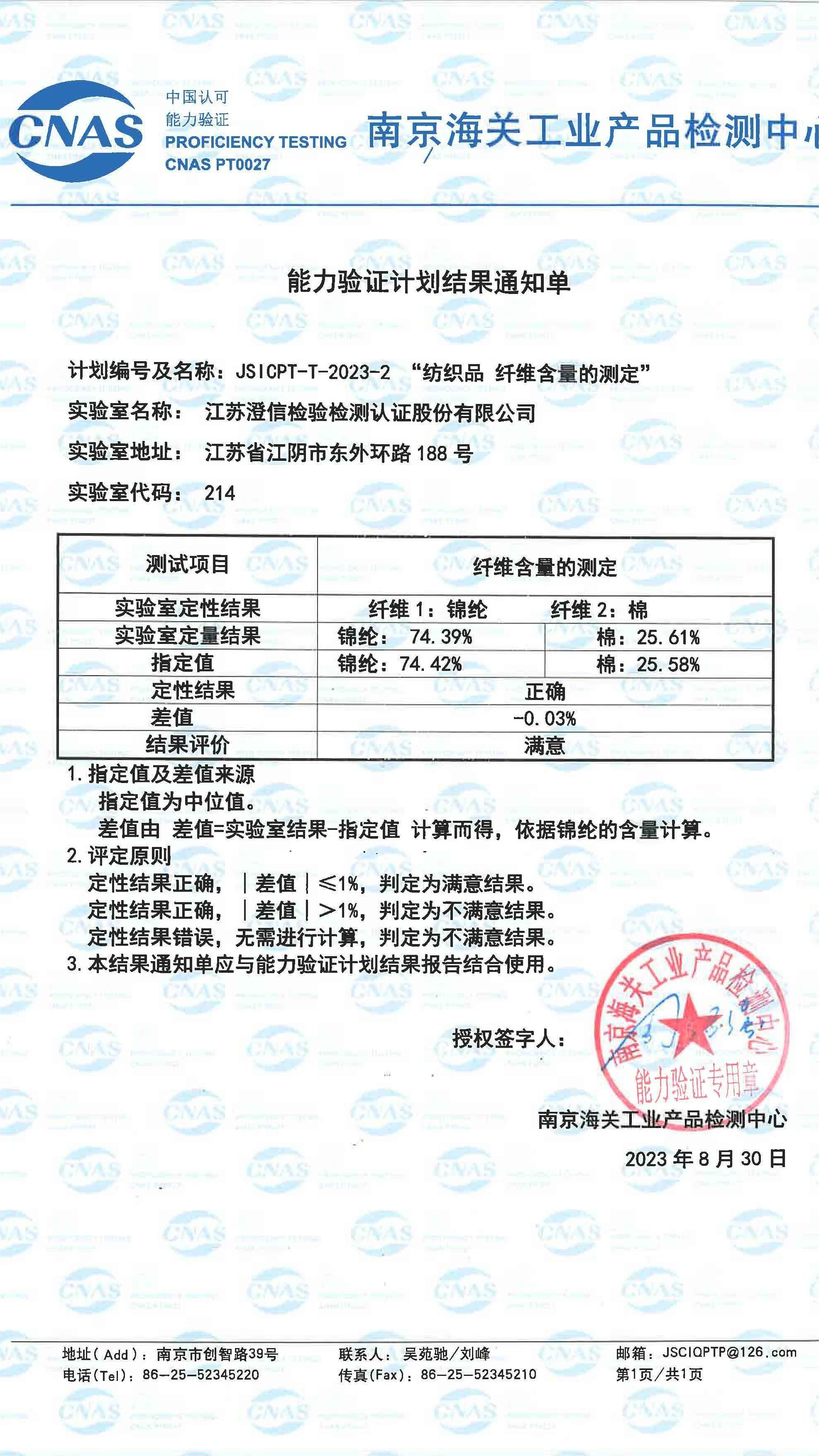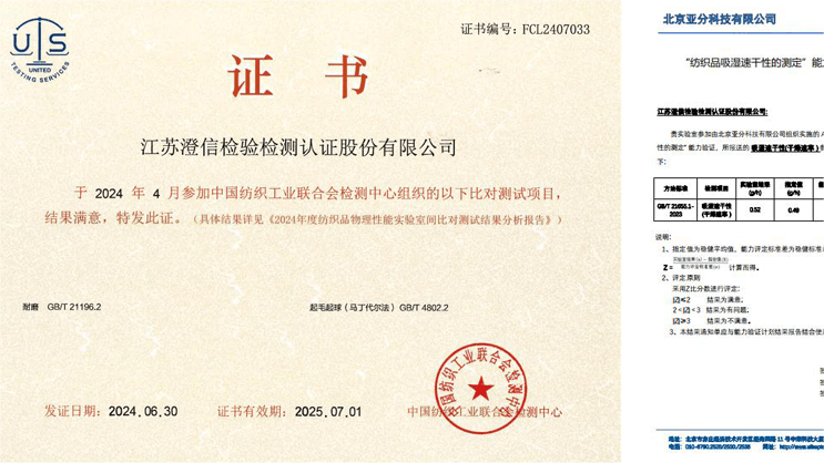 國家紡織產品質量監督檢驗中心(江陰)成立于2009年,是江蘇省第一個國家級的紡織產品質檢中心,專業從事纖維、紗線、紡織品、羽絨、服裝等相關產品檢測的國家級實驗室。職能主要是承擔相關產品的國家、江蘇省市場監管部門的監督抽查、風險監測和執法委托等任務,參與承擔國家、行業標準的制修訂工作,承接有關客戶的委托檢驗,協助企業解決技術及產品質量相關問題。